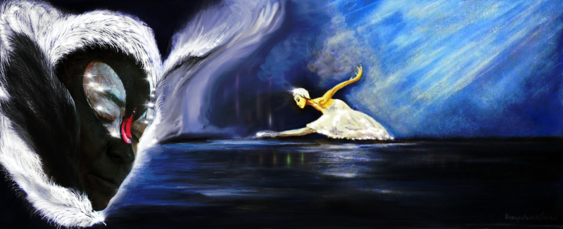 Digital union of Barbara’s oil painting the Water Lilies , Face painting the Black Swan